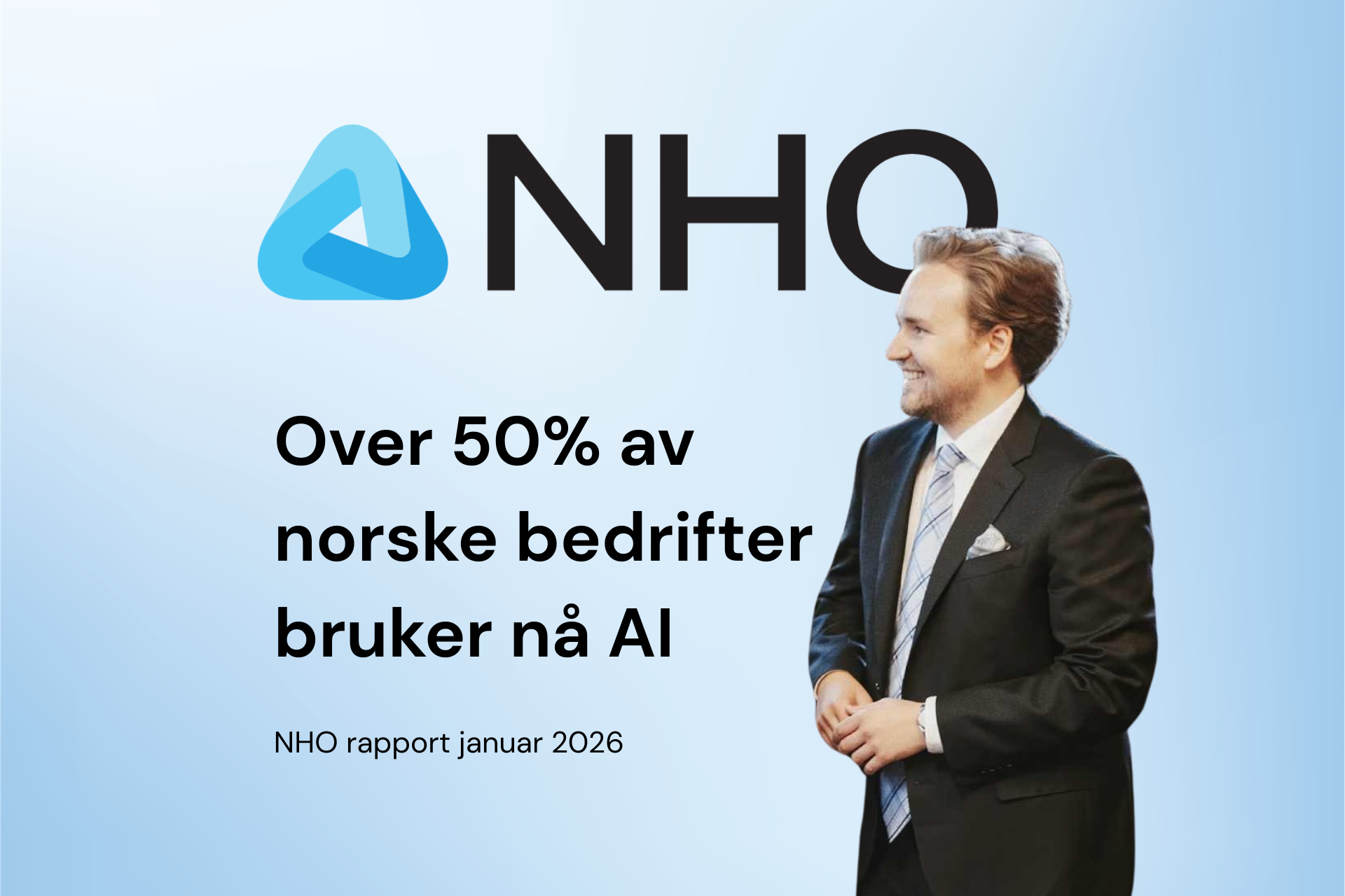 Den 12. januar 2026 lanserte NHO, Abelia, NHO Elektro, Norsk Industri og Fornybar Norge en oppdatert rapport basert på svar fra over 4 000 norske virksomheter. Hovedfunnet er slående: 55 prosent av norske bedrifter bruker nå kunstig intelligens i en eller annen form. Det er mer enn en dobling på to år.